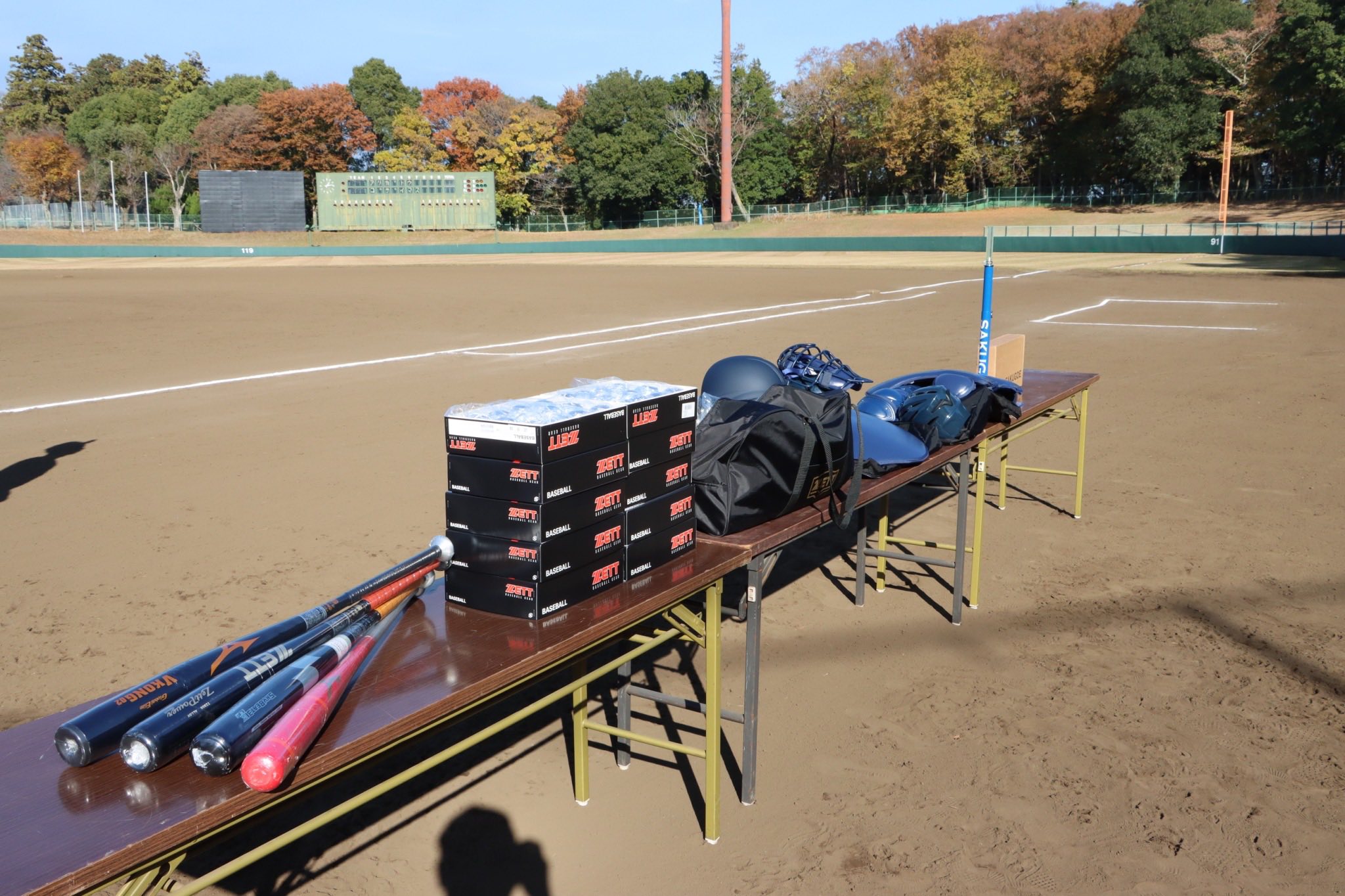 晴天の中、吉川美南ボーイズの応援と称して豪華な野球道具一式の贈呈式が行われました。
